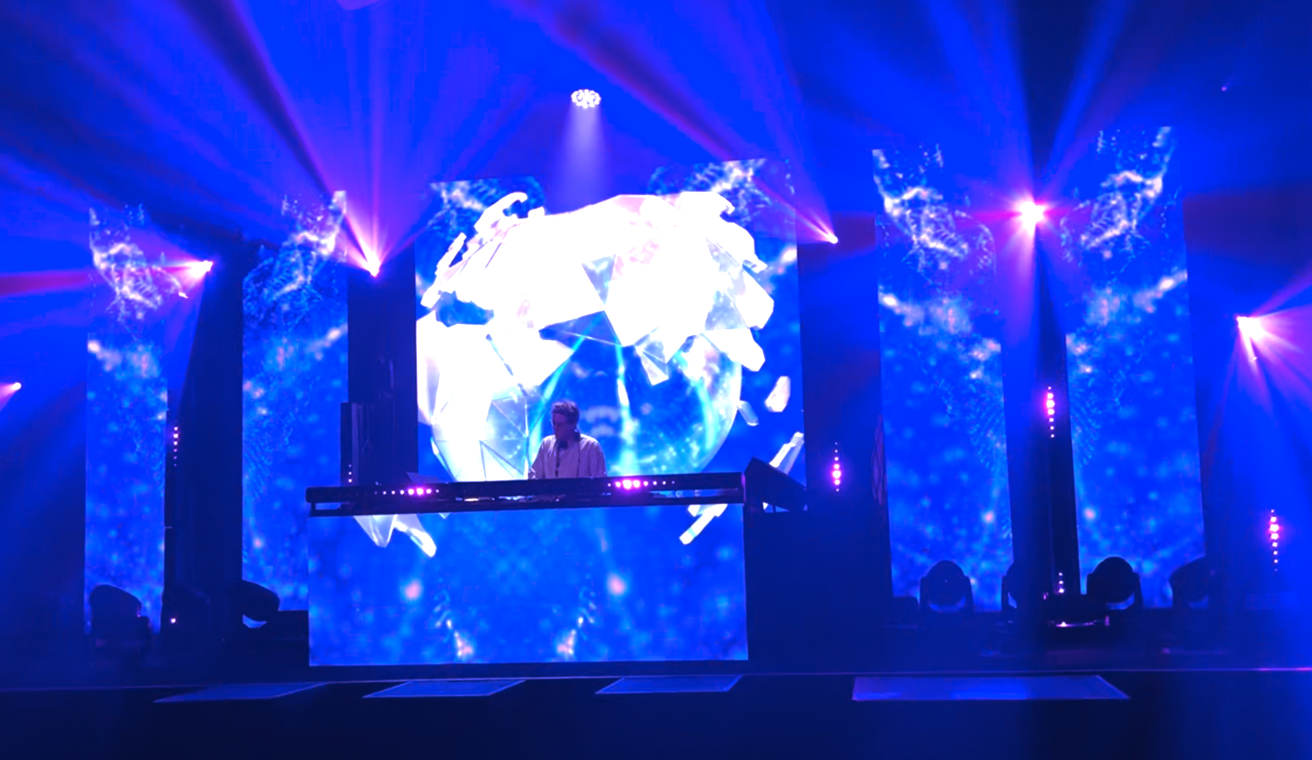 Real-time visuals designed for live environments — from corporate stages to clubs and festivals. Always tailored to the space, the audience and the moment.